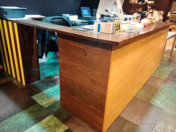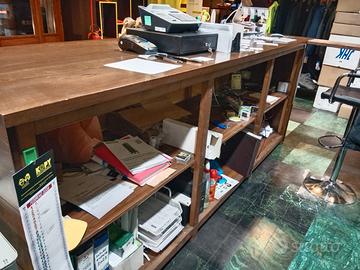 Bancone in legno dimensioni 200x70 cm x 100 cm altezza con ripiani