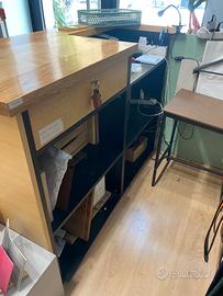Vendo bancone cassa negozio realizzato da falegname in legno massello il pannello davanti a listelli è stato applicato in un secondo memento e si può rimuovere . Altre foto in privato misure 140cm lunghezza x 60cm larghezza x 100cm altezza