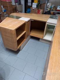 Vendo meraviglioso bancone negozio. Verrà smontato nei prossimi giorni quindi chi lo vorrà comprare lo trova già pronto per portarlo via. Un vero affare perché è in ottime condizioni. Ha due vetrinette che potrete anche illuminare inserendo dei faretti e dietro banco tantissimo spazio con ripiani e cassetti per riporre del materiale. Ha una forma un po particolare e di Design con inserti in travertino sopra e sotto sulla pedana del banco. Possibile anche inserirlo appoggiato su parete ad angolo.