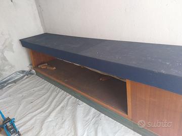 Bancone per negozio in legno vintage anni 60 dimensioni in cm 320x67. NO SPEDIZIONI solo ritiro. Prezzo trattabile