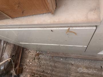 Bancone bianco per negozio , lungo 170 cm . Il bancone ha 2 cassetti grandi , 1 cassettino piccolo e 1 sportello. Non è rovinato , ma è da pulire .