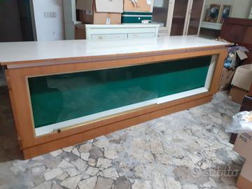 bancone anni 80 in buone condizioni con cassettiera , sono solo da sostituire i vetri scorrevoli anteriori misure cm 273 x 74 x 90h - ritiro in loco
