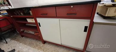 Vendo bancone anni 80, in ferro, ideale per ufficio o negozi, colori attuali, in ottimo stato, misure lunghezza cm 202, larghezza cm 69, altezza cm 99. Ritiro sul posto , vendo per sgombro locale
