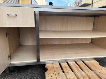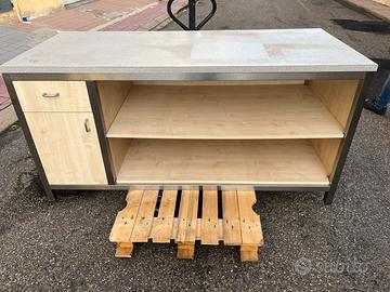 Il banco è usato e presenta normali segni di usura dovuti all’utilizzo. Al momento risulta un po’ polveroso, ma le condizioni generali sono buone e il bancone è strutturalmente solido e funzionale.