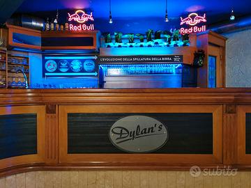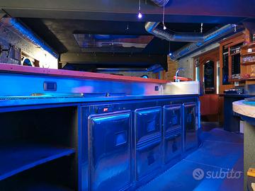Vendesi bancone per locale in legno massello, lunghezza totale 11 metri di sviluppo, completo di: