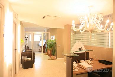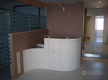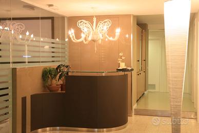 Bancone Reception 170 x100 cm. perfetta per centri benessere, uffici, ambulatori.... in pelle marrone scuro e pannelli laccati lucidi beige. Il piano di lavoro è altezza scrivania e il piano di appoggio per far firmare documenti o pagamenti...è in vetro antisfondamento di 1,3 cm. finiture in acciaio inox satinato. Disegnato da una Interior Designer che ha lavorato con Matteo Thun. Compreso nel prezzo pannellatura di rivestimento del cartongesso laccata lucida beige. Non può essere spedito , ma ritiro sul posto. Pagamento con Paypall o contanti