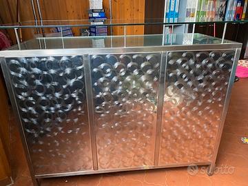Bancone reception adatto anche per negozi di accessori moda. In ottimo stato. Misure: 1,25 L. x 55 L. x 102 H.