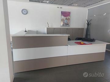 BANCONE RECEPTION MISURE: 304 X 320 X 78 PX 108 ALTEZZA USATO POCHISSIMO,OTTIME RIFINITURE RITIRO IN LOCO NB possibilita' di abbinare cassettiere con chiavi,armadi archivio e poltroncine