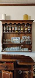 Vendo bancone bar con portabottiglie / bicchieri ,vintage anni '70 , in legno massello con modanature in ferro battuto , con abbinati 2 sgabelli in legno con seduta impagliata , ideale per taverna e/o angolo ritrovo , mantenuto in ottime condizioni .