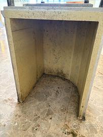 Vendesi bancone composto da due basi in marmo e travertino fatte a mano , con retro aperto per riporre oggetti e utensili , con piano in vetro rimovibile..dato il suo utilizzo negli anni quest'ultimo è sbeccato in un angolo e la superficie è fisiologicamente rigata .. dimensioni colonne h 75 cm x 60 cm x 60 cm ..con il vetro l'altezza del bancone arriva a 85 cm.. se interessati , potete chiedere info in privato ..ovviamente non spedisco e il ritiro è carico dell'acquirente