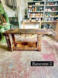 2 banconi da falegname originali, in legno massello, pezzo unico di grande fascino e autenticità.