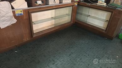 L’altro ha davanti vetrinette e sopra banco d’appoggio e scrivania per cassa/ufficio