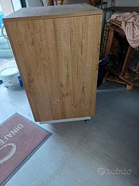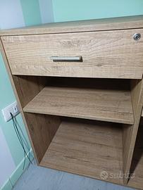 Bancone a scaffale/libreria con robuste ruote alto 103 (senza ruote 93) largo 61 profondo 60 € 50. Bancone doppio con ripiani e cassetti alro 93 profondo 60 largo 120 € 70. Usati pochissimo, prezzo trattabile se presi insieme. Info Francesco