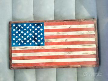Bandiera americana in legno riciclato rustica, perfetta per arredare casa o per essere regalata ad un appassionato degli USA, dimensioni approx 35x65x2cm.