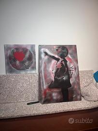 Vendo opera famosa di Banksy. Unico pezzo cosi realizzato con pianeta e cuore immerso nella forma tonda del mondo simbolo della missione compiuta della Artemis II, con gli astronauti tornati sulla terra oggi 11.04.2026. Prezzo di vendita per entrambi i quadri 60 euro