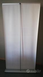 Banner Roll Up De Luxe monofacciale dim. 1x2 metri con struttura in alluminio, completo di sacca/custodia. Il Roll Up è stato usato una sola volta per una esposizione, ha il telo stampato per cui deve essere sostituito, N° 02 pezzi