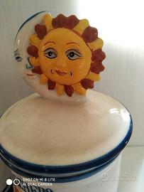 Bellissimi barattoli caffè e zucchero porcellana con immagini sole e luna come da foto, mai usati.