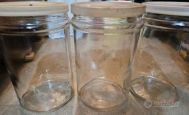 3 Barattoli grandi con coperchio a pressione in plastica.