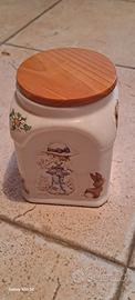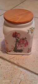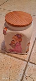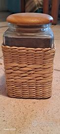 Barattolo ceramica decorato firmato Sarah Kay Contenitore in vetro con rivestimento in vimini 5 euro l'uno