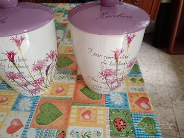 Vendo tre barattoli mai usati in ceramica per zucchero, caffè e sale.