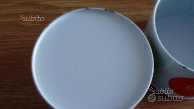 Vendo set di tre barattoli colorati grigio (zucchero), verde (the), e arancio (caffè). DIametro 11cm, altezza 13cm. Il barattolo arancio e verde sono leggermente rovinati all'interno, vedi foto