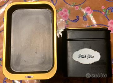 Vendo; 2 barattoli decorativi in metallo bicolore, di diverse dimensioni sale fine/ sale grosso. Non spedisco. Consegna a mano.