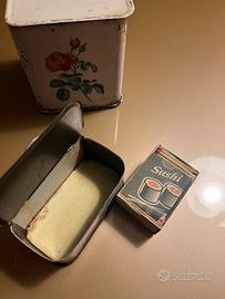 Barattolo di latta porta sale Barattolo di latta porta fiammiferi Vintage provenienza francese Discrete condì