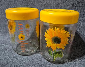 Coppia di Barattoli da Cucina in vetro con tappo in plastica, tema Girasolj