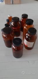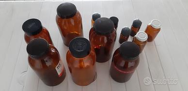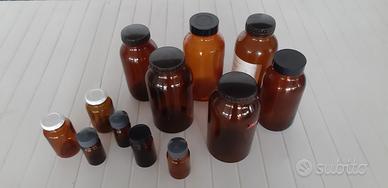 N° 12 contenitori in vetro antico per farmacia/erboristeria(oggetti d'epoca vintage). Dimensione circa: barattoli grandi diametro 10 cm altezza 20/22 cm. Barattoli piccoli diametro 4/5/6 cm altezza 8,5/9,5/11 cm.