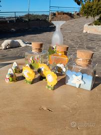 stock tre barattoli in vetro con tappi di sughero e mini oggetti della stessa linea