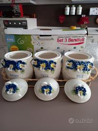 barattoli zucchero, caffè e sale.