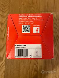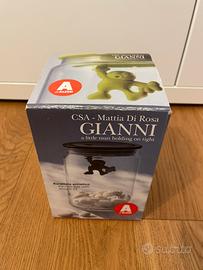 Barattolo da cucina ermetico in vetro con coperchio in plastica bianco. Linea “Gianni” di Alessi. Contenenza: 90 cl Dimensioni: diametro 10,5 cm - altezza 15 cm