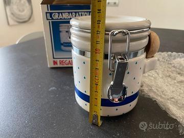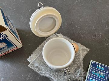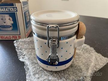 Barattolo porta zucchero, porta caffè.... con etichette da applicare e scatola originale. Mai utilizzato La misura è indicata nella foto