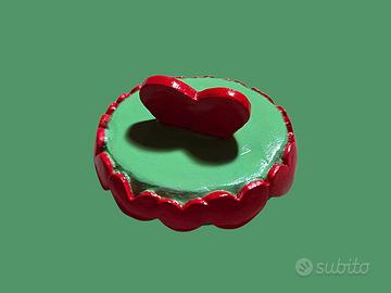 Dettagli: Il coperchio di color verde pastello e impreziosito da una corona di cuori rossi in rilievo.
