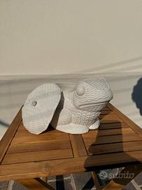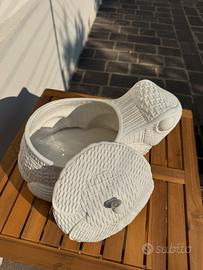 Barattolo vintage in ceramica a forma di rana con motivo intrecciato. Dotato di coperchio, perfetto come zuccheriera, portabiscotti o semplice elemento d’arredo vintage.