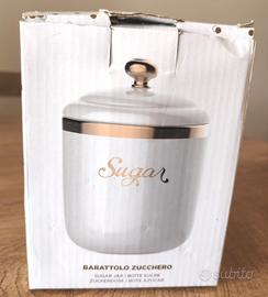 Barattolo zucchero Bialetti in new bone China (porcellana) bianco con dettagli a mano in oro. Linea vintage. Mai utilizzato in confezione originale.