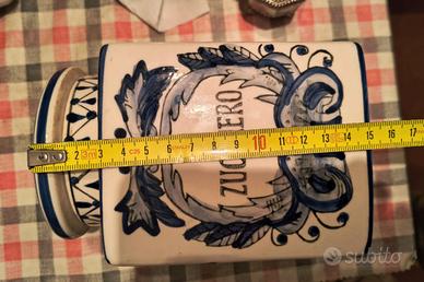 Elegante barattolo in ceramica, perfetto per conservare lo zucchero. Il design classico con decorazioni blu su sfondo bianco aggiunge un tocco di stile alla tua cucina.