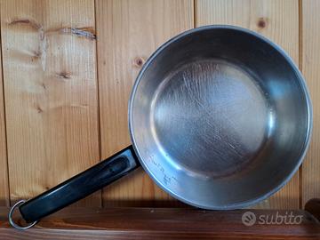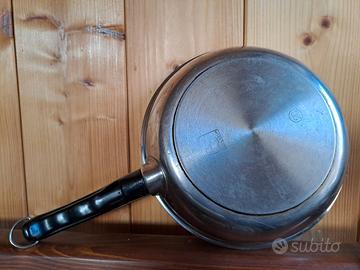 Per inutilizzo si vendono due padelle in acciaio inossidabile con manico lungo della Barazzoni con il tipico triplo fondo (acciaio-alluminio-acciaio).