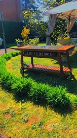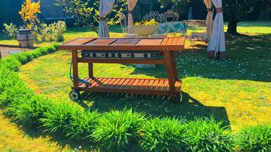 Vendo barbecue a gas con piano cottura in acciaio e robusta struttura in legno.