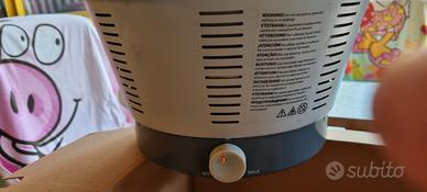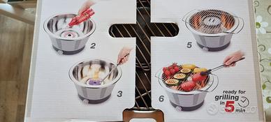 Barbecue Tescoma Party time. Barbecue da tavolo, a carbonella, con ventilazione prodotta da una ventola, alimentata a batterie stilo, posta al centro della base inferiore sotto il cestello della carbonella, alimenta la brace e favorisce la diffusione del calore uniformemente su tutta la superfice di cottura. Cestello porta carbonella riparato, dimensione scatola 41x38x23. € 48. No Spedizione zona gianicolense Tel. 3479579503