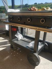 Piastra inox da 1metro a gas, con apposito carrello.