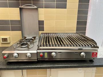 Barbecue a gas con fornelli e piastra in acciaio e sottofondo con pietra lavica Ottime condizioni