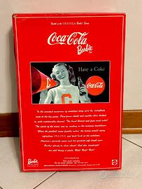 Barbie Coca-Cola Cheerleader (2000) - Collector Edition - NRFB In vendita splendida Barbie Coca-Cola Cheerleader, edizione da collezione originale Mattel dell'anno 2000. La bambola rappresenta una perfetta cheerleader in stile college anni '50, con un outfit ricco di dettagli. Abbigliamento con Bomber rosso e bianco con logo Coca-Cola e nome "Ken" ricamato, gonna a pieghe coordinata e maglioncino. Accessori con Pom-pon bianchi e rossi, megafono con brand Coca-Cola, scarpette bianche con calzettoni e piedistallo incluso. La bambola è nuova, mai rimossa dalla scatola (NRFB). La confezione è integra.