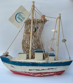 Deliziosa barca con conchiglie in stile shabby-chic tutto in legno