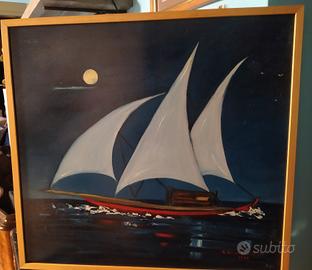 quadro , Silvia Vanossi d' este , quadro con barca a vela , anno 1990