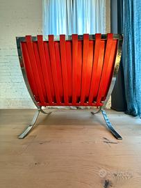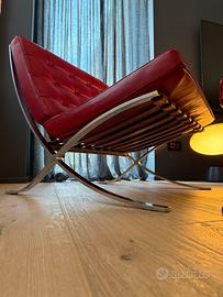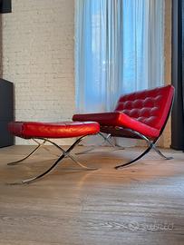 Poltrona e pouf in vera pelle “Giorgia”, PRODOTTA IN ITALIA, a La Spezia, da “I grandi Maestri del design”, su disegno originale del 1929 del Designer e Architetto Mies Van Der Rohe. Presenta piccolissimi segni di vissuto ma é in ottime condizioni generali. Struttura in acciaio cromato lucido. Prezzo a nuovo 2.265,00 euro più costi di spedizione. Ritirabile a Torino a cura dell’acquirente. Telefonare solo se conoscitori del prodotto e veramente interessati. Non é una produzione cinese o a basso costo.