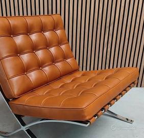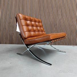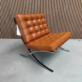 SPLENDIDA Poltrona NUOVA produzione Knoll international USA modello Barcelona in pelle Venezia Cognac L . Design di Mies van der Rohe Acquistate da Stock in eccedenza di magazzino.