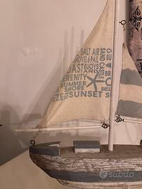 decorazione barca a vela, molto bella da abbinare con il faro. stile shabby chic. dimensioni: 33cm x 55cm #barca #barchettadecorazione #decorazione #decorazionecasa