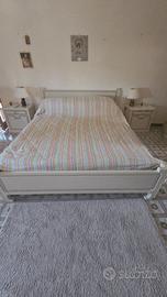 Camera da letto di legno pregiato, comprende armadio m. 3 di lunghezza, altezza m. 2,80, cassettiera 4 cassetti, letto con reti, comodini (il cassetto di un comodino è danneggiato).