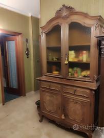 Di ottima fattura con intarsi in barocco piemontese certificati cadorin mobili di Revello, eccellenza degli anni ,70/80 doppio corpo ribaltina tavolo con 6 sedie imbottite rifatte recentemente.